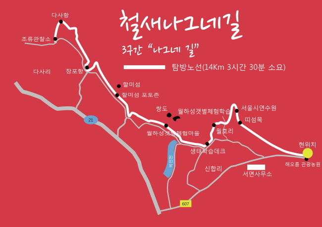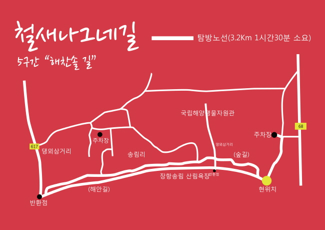 자연스러운 길을 따라 서천의 아름다운 해송숲과 해변을 보며 걸을 수 있는 친환경 트레킹 코스인 충청남도 서천의 철새나그네길 5구간 (해찬솔길)입니다.