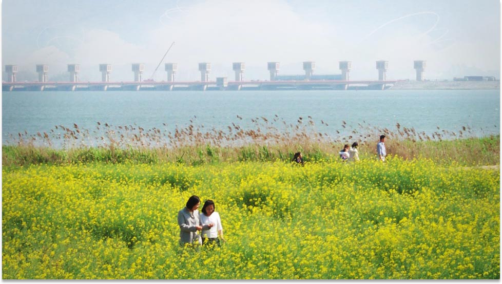 韩国四大江之一——锦江绕忠清道流入西海的候鸟乐园——锦江河口。在400多里流淌的锦江流向西海之处,每到冬季可以观看到40多种50多万只候鸟的壮观景象。这里是白天鹅、针尾鸭、绿头鸭、鸿雁等鸭类和雁类等越冬的地方,对于水鸟来说是重要的生态地区。 锦江河口周围有广阔的大地和丰富的水资源和鱼类资源,从锦江河口堤至新城里芦苇地有着茂密的芦苇林,数万只候鸟栖息于此,是易于觅食的候鸟栖息地,拥有天然的自然环境。舒川的锦江河口还是韩国可从最近处观看候鸟的候鸟探鸟最佳地,是必须受到全世界保护的重要生态地区。