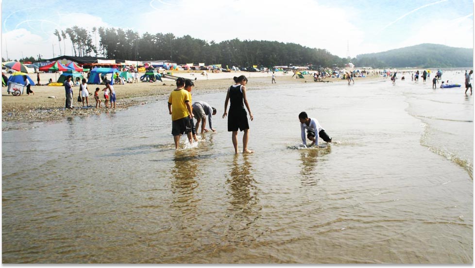 The sandy beach is a great place to play sports such as beach volleyball and foot volleyball. Also, the gentle slopes, low water depth and gentle waves make it a perfect place to enjoy a swim. The Chunjangdae Beach containing tidal flats and pine and acacia forests has been designated as one of the 8 natural learning sites by the Korea Tourism Organizatoin (KTO). It also offers a spectacular view of the sea waves moving toward and away from the shoreline to reveal the white sandy beach. You can enjoy sunbathing or catch a variety of clams on the beach and around the rocks at low tide.