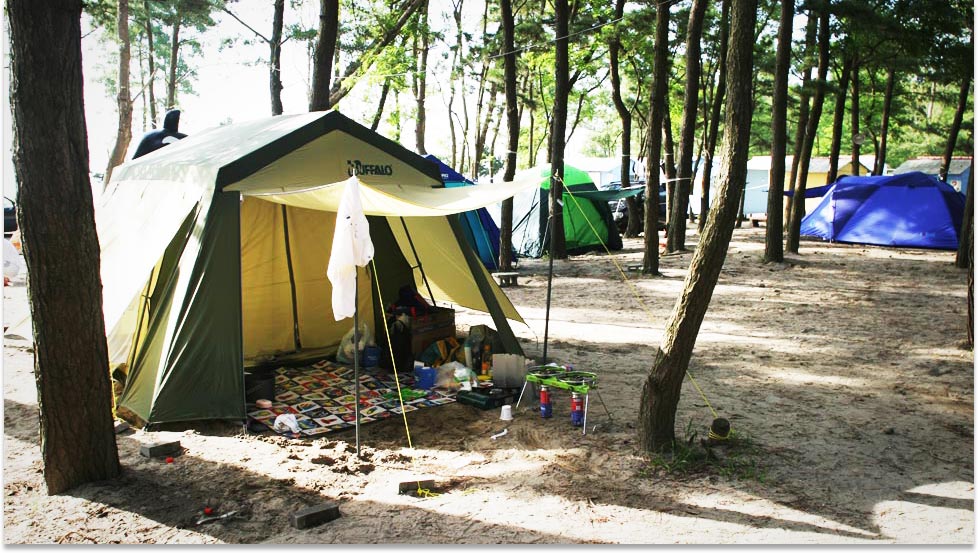 The Chunjangdae Beach is a popular summer vacation spot in Seochon. It blends harmoniously with the black pine and acacia forests, making it a perfect place for camping. When you camp out in the black pine forest, you will gain a sense of well-being and stay cool despite the heat wave.