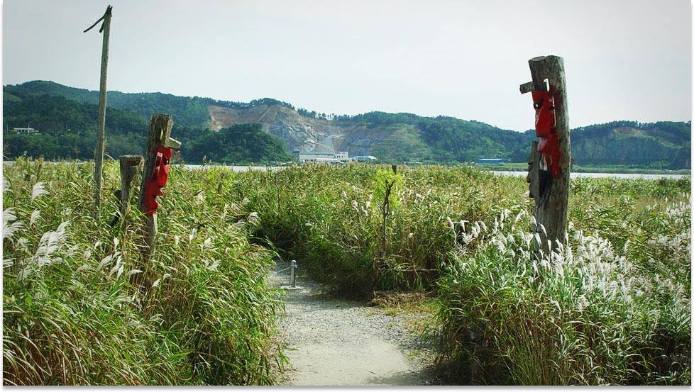 陽光を浴びてゆらゆらと揺れる錦江の川波と神秘的な調和をなす新城里葦原。ここでは、次から次へと新しい恋の芽も息吹き、誰もが映画の主人公になれる。真っ青な空に今にも届きそうな葦が壮観をなしており、約23万m²の規模を誇る韓国4大葦原の一つである。映画JSAの撮影地としても有名で、韓国観光公社選定の自然学習の場でもある。