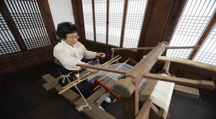 이곳은 중요무형문화재 제14호 ‘한산모시짜기’ 기능보유자 방연옥 선생님이 상주하면서 한산모시 짜기를 시연하는 곳이기도 합니다.