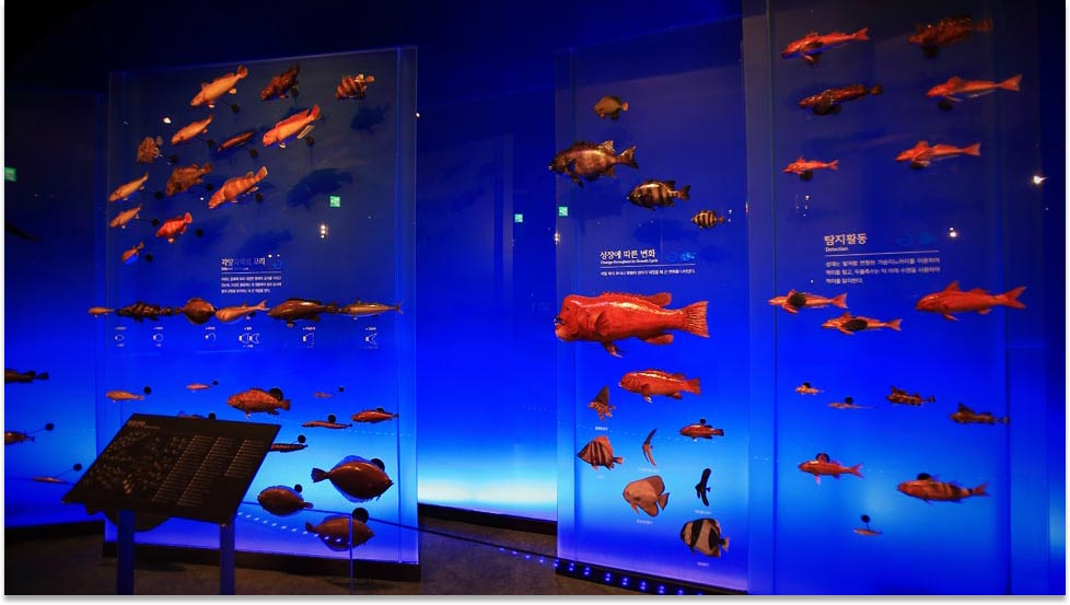 Viện bảo tàng tài nguyên gồm 3 tòa kiến trúc từ tầng hầm B1 cho tới tầng 4 là Tòa nghiên cứu, tòa triển lãm và tòa giáo dục, thực hiện chương trình thí điểm triển lãm 7500 tiêu bản sinh vật biển. Tạo hình tài nguyên sinh vật biển ở trung tâm tầng 1 là biểu tượng của Bảo tàng và triển lãm 5100 tiêu bản ngâm nước của các loài sinh vật biển sống tại Hàn Quốc. Khách tham quan có thể sử dụng công cụ tìm kiếm tiêu bản sinh vật biển được triển lãm để quan sát trong thực tế.